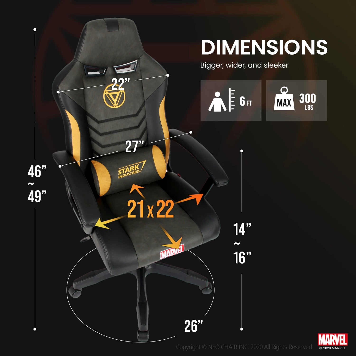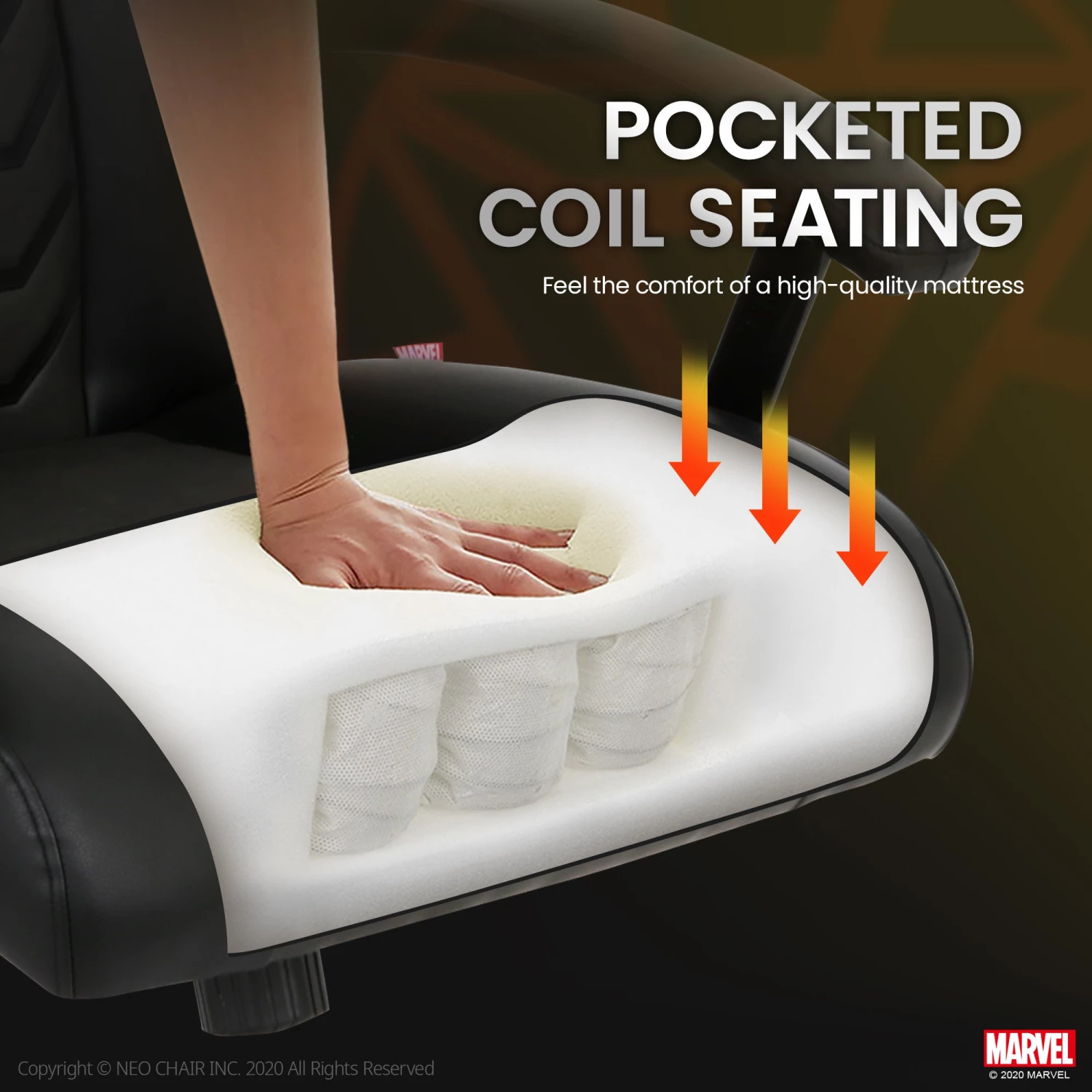 Ergonomically designed for lasting comfort and manufactured with 1.5mm steel frames to support you for 10 years. With our design officially licensed by MARVEL, our chairs are high quality gaming chairs that passed the rigorous BIFMA standards.